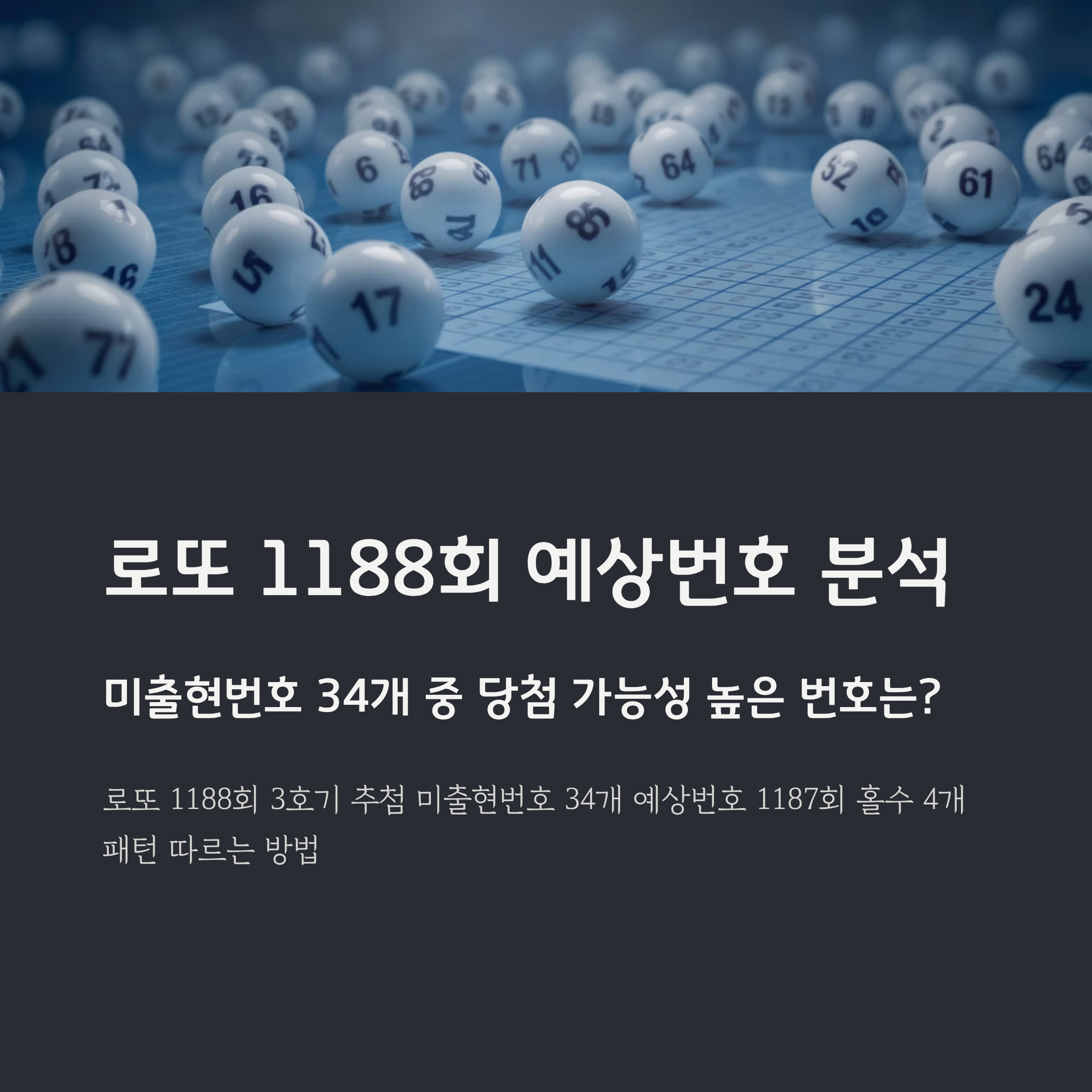 로또 1188회가 코앞으로 다가오면서 많은 분들이 2025년 9월 6일 추첨에 대한 관심이 높아지고 있습니다. 특히 최근 1187회에서는 홀수 4개와 짝수 3개의 패턴을 보였으며, 5주간 미출현번호에서 3개가 당첨되는 흥미로운 결과를 보여주었습니다. 1187회 당첨번호 5, 13, 26, 29, 37, 40은 2호기에서 추첨되었고, 1188회는 9월 첫 추첨으로 3호기로 바뀝니다. 이러한 추첨기 변화와 함께 체계적인 분석을 통해 예상번호를 도출해보겠습니다.