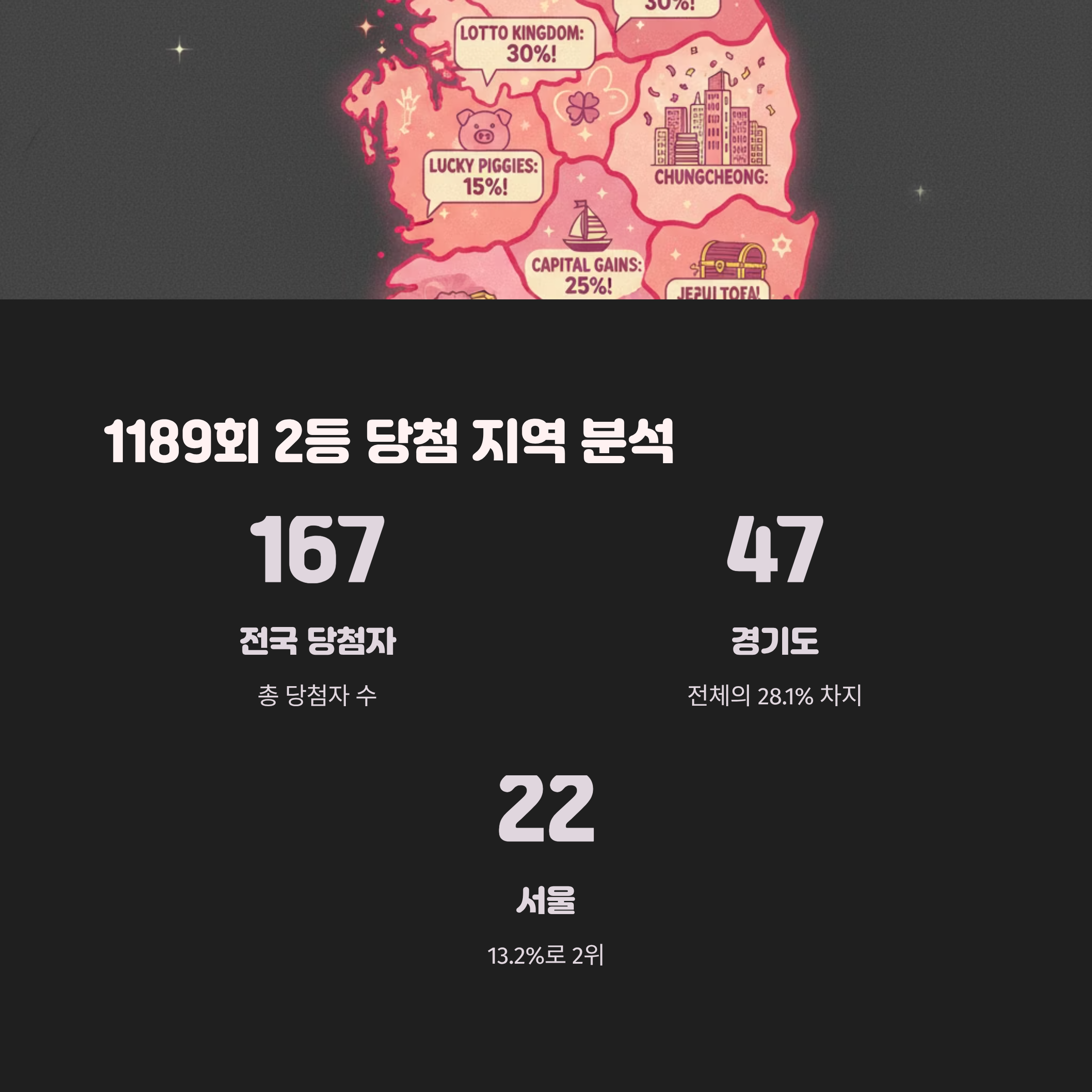 1189회 로또 추첨에서 경기도가 47명으로 압도적인 당첨자를 배출한 것은 수도권 집중 현상을 다시 한번 보여주었습니다.