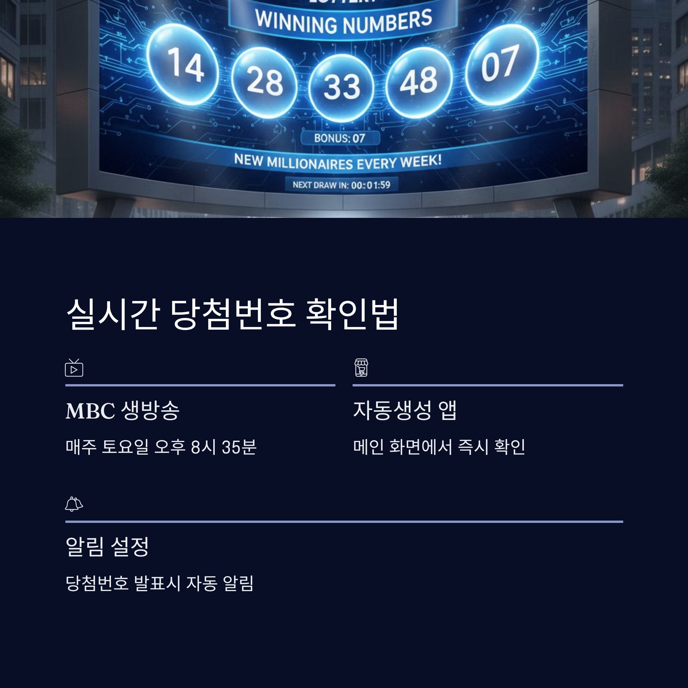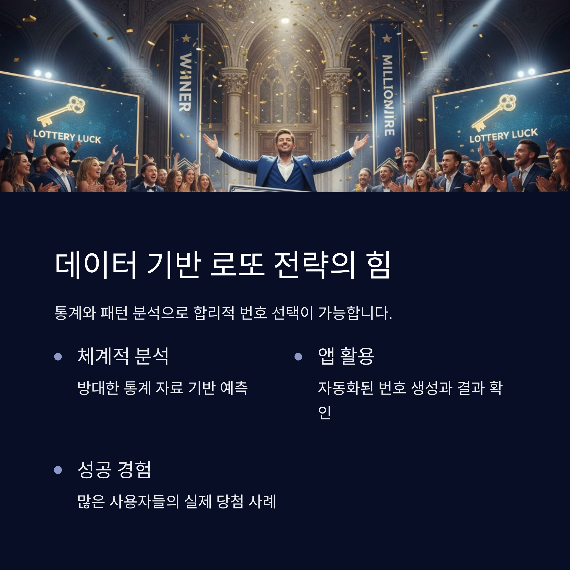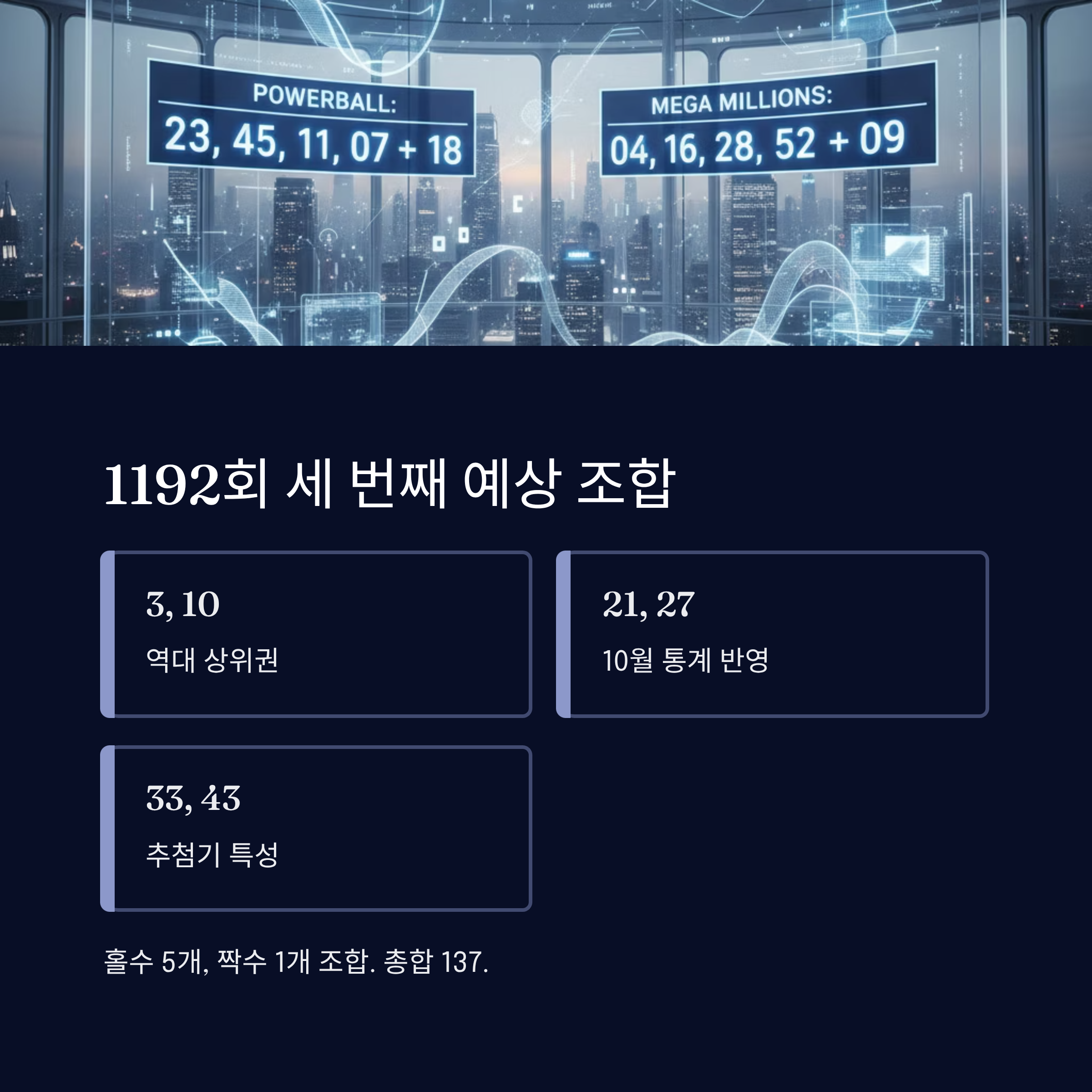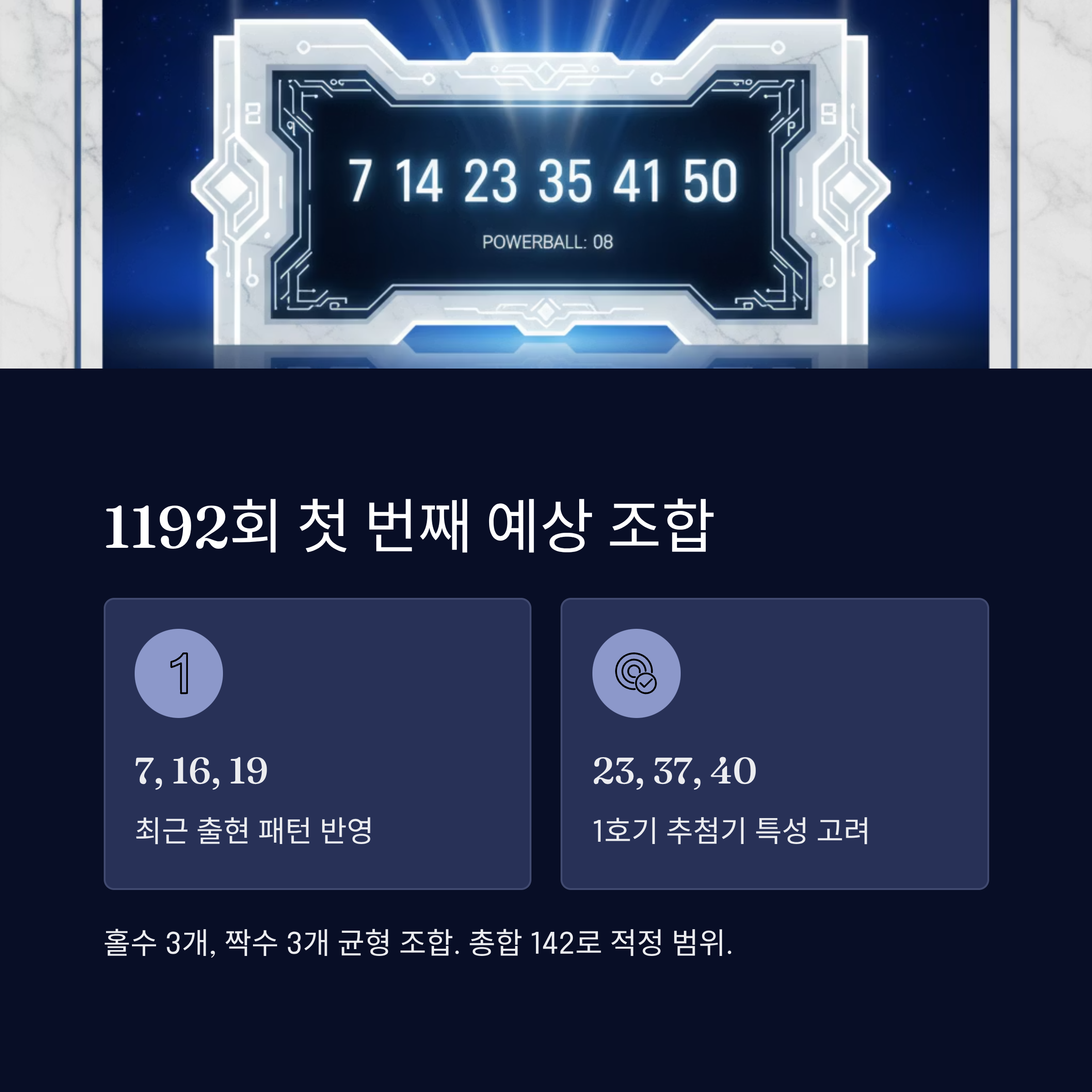 앱을 이용하면 몇 번의 터치만으로 최적화된 예상번호를 생성할 수 있고, 당첨 여부도 자동으로 확인할 수 있습니다. 많은 분들이 이미 이 앱을 통해 데이터 기반의 체계적인 번호 선택을 하고 계시며, 그 효과를 직접 경험하고 계십니다. 1192회에서도 여러분 모두 좋은 결과 있으시길 바랍니다.