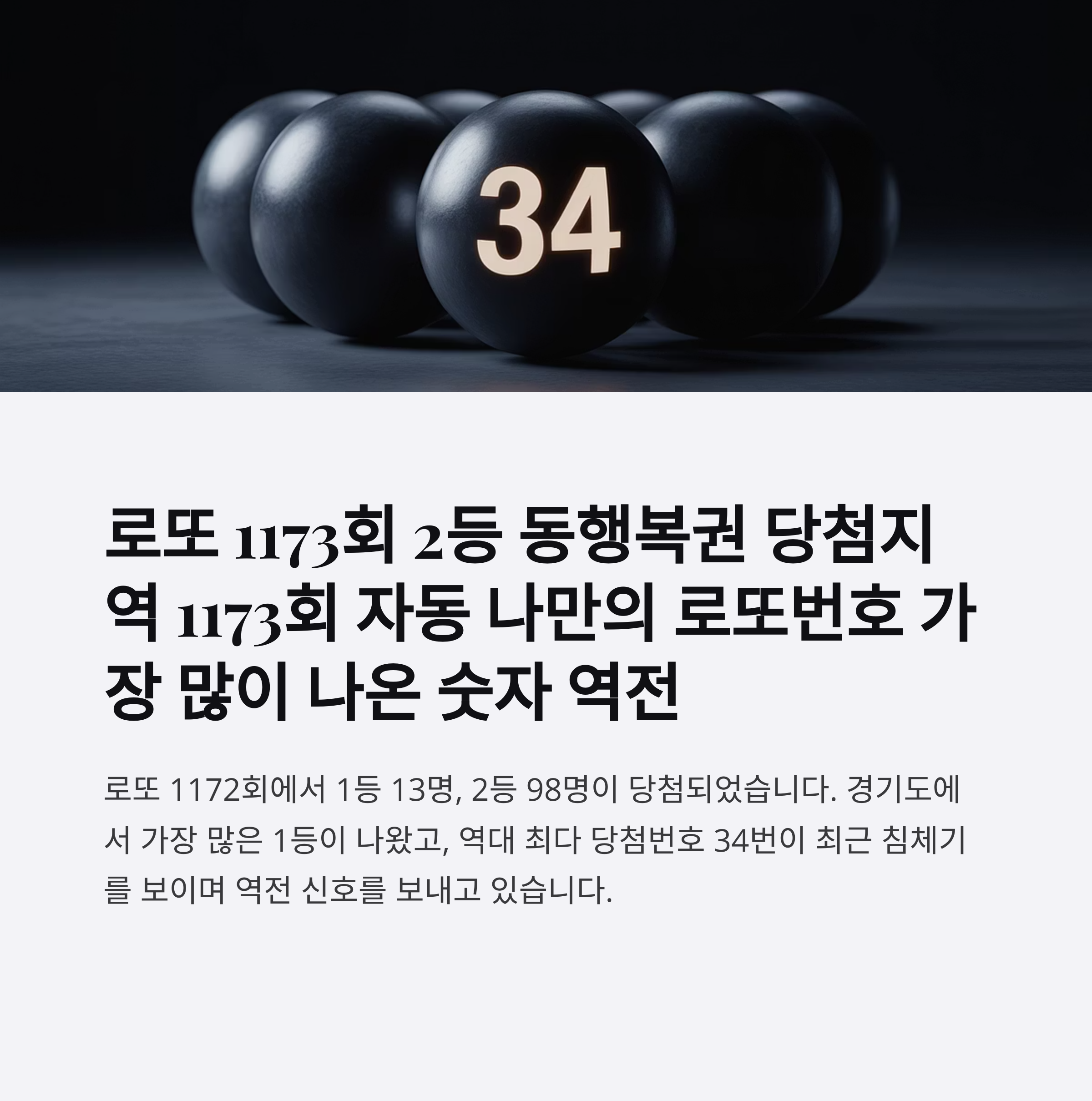 로또 1173회 2등 동행복권 당첨지역과 자동 나만의 로또번호, 그리고 가장 많이 나온 숫자의 역전 현상이 이번주 로또 예상의 핵심 포인트로 떠올랐어요. 1172회에서 1등 13명, 2등 98명이 당첨되며 총 판매액 1,175억원을 기록한 가운데, 경기도가 4명으로 가장 많은 1등 당첨자를 배출했죠.