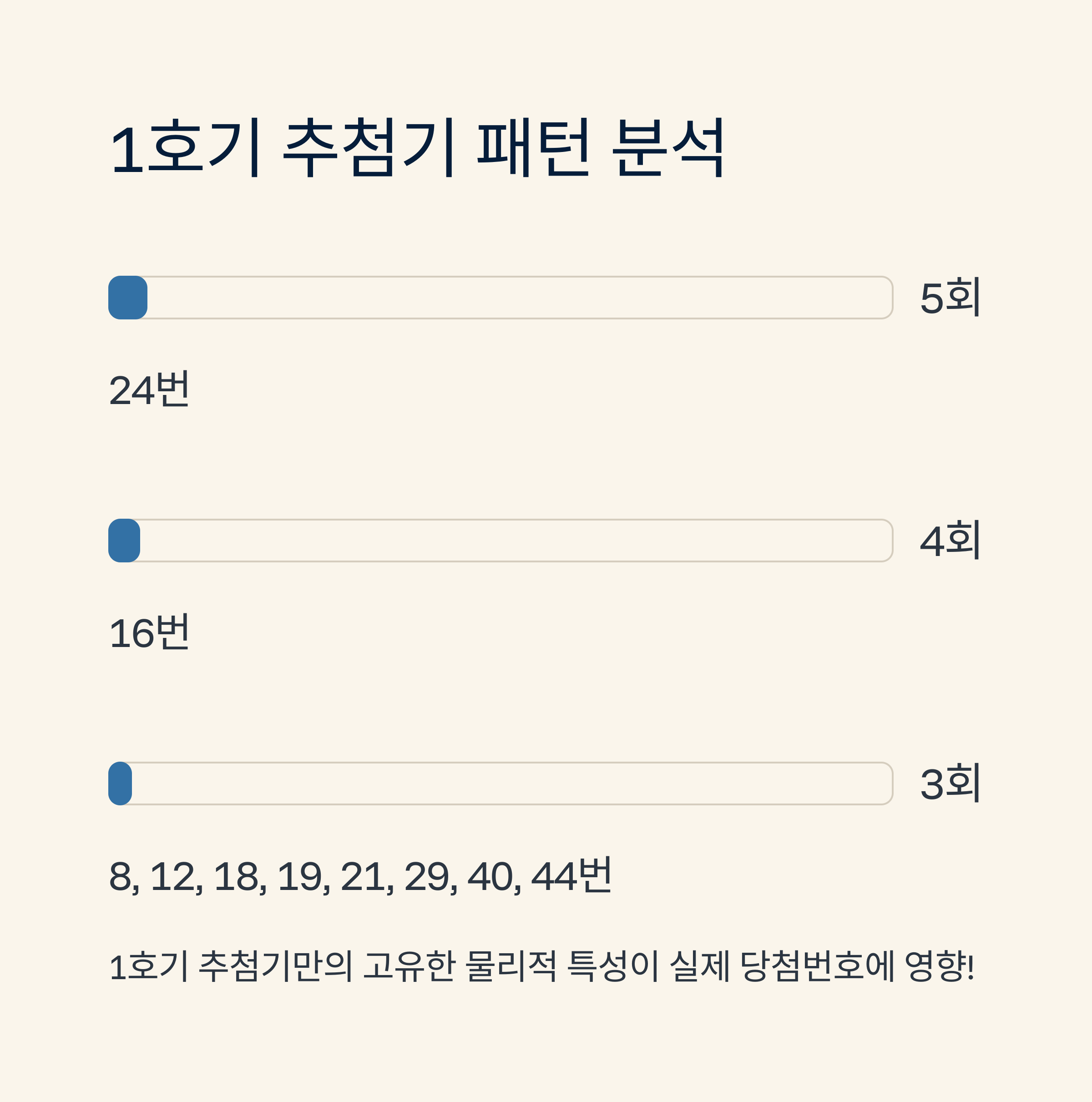 이런 패턴은 1호기 추첨기만의 고유한 물리적 특성으로 해석되며, 기계적 편향성이 실제로 존재함을 보여주는 강력한 증거다.