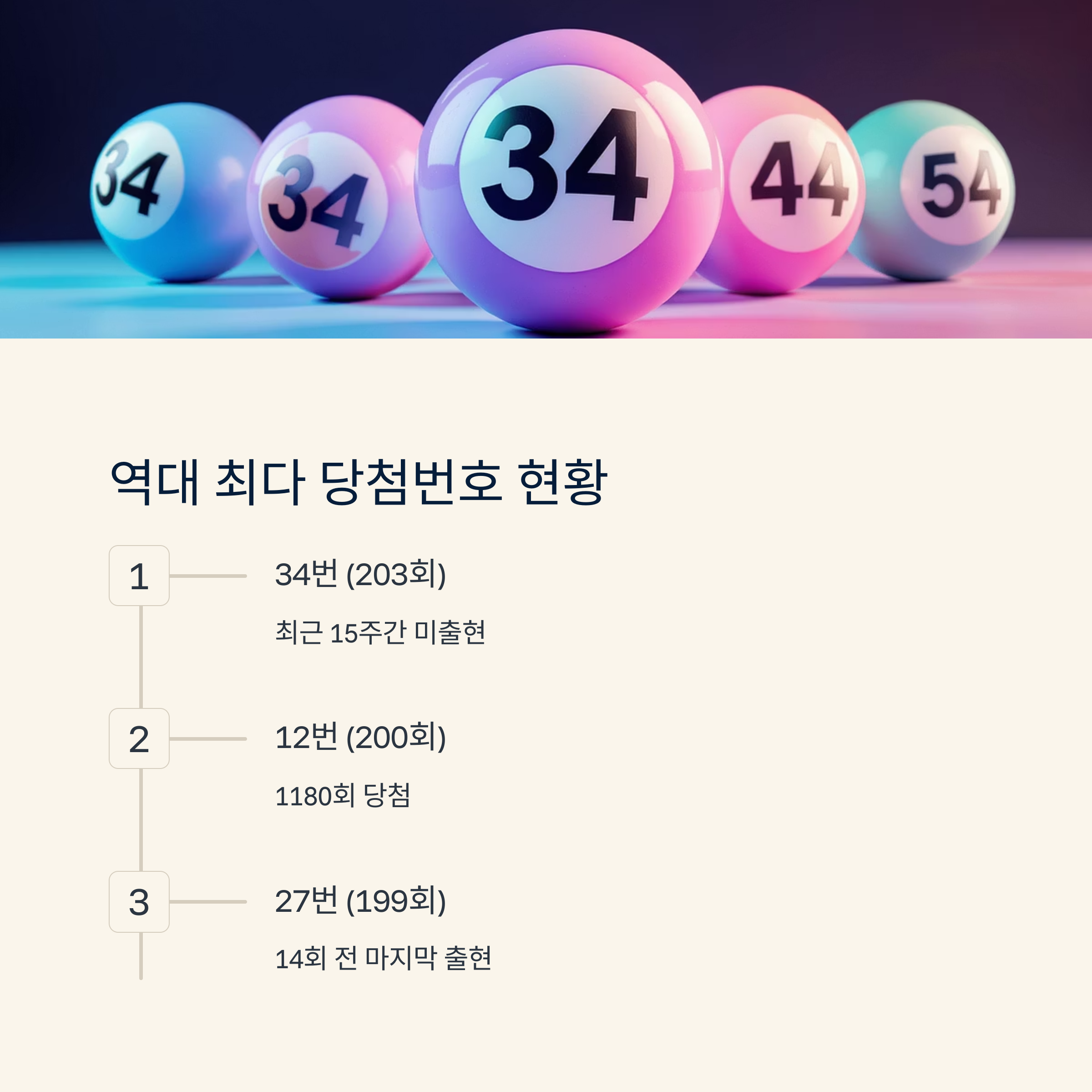 특히 역대 최다 당첨번호인 34번(203회)이 최근 15주간 미출현 상태인 점과 7월 통계 상위권 번호들의 현재 침체 상황은 이번 1181회에서 주목해야 할 변곡점으로 분석된다.